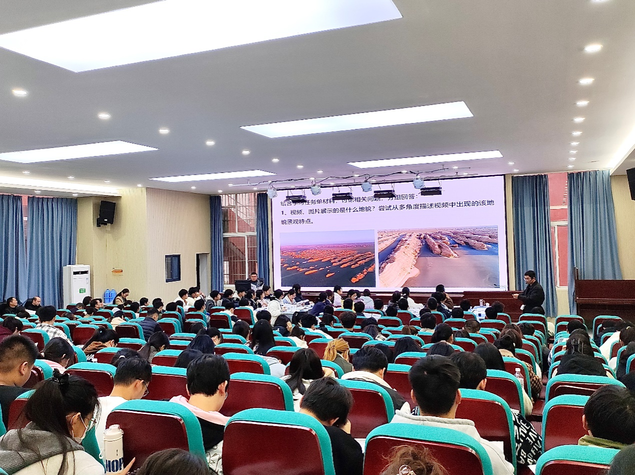 11月19日14点30分,张结、李亮、刘慧和袁甲等老师带领2023级地理科学(师范)专业全体同学,赴阜阳市红旗中学观摩“颍州区第四届高中教育质量提升成果展”活动。合肥十中的陈莉君老师、红旗中学的华传兴老师、程森林老师分别以“喀什斯特地貌”、“河流地貌”、“风沙地貌”为主题,展现出卓越的教学风采。三位老师充分运用现代教育技术手段,将精美的图片、震撼的视频及直观的地理模型相结合,让晦涩的理论知识变得鲜活。通过设置充满趣味与挑战的探究问题,实现互动性与实践性兼具的教学模式,为地理教学的创新与发展注入了新的灵感与活力。