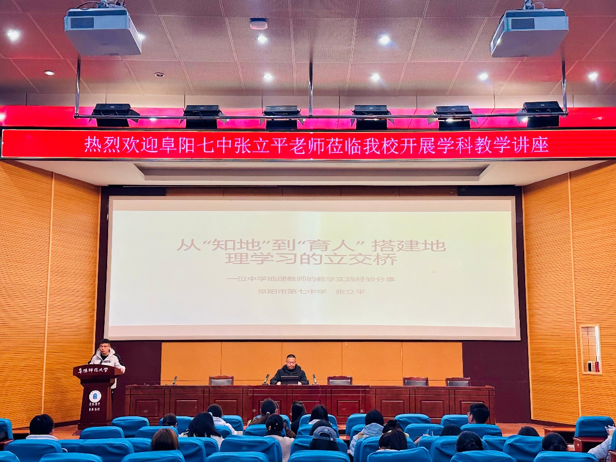 11月17日至22日,2023级和2024级地理科学专业本科生开展了教育见习周系列讲座活动。学院邀请了阜阳市第一初级中学王传海副校长、阜阳市第七中学的张立平老师、地理科学教研室的郑辉军博士与马茜茜博士为地理科学专业学生作学术报告。
