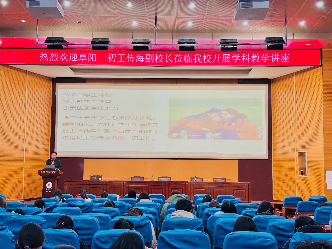 11月18日,王传海副校长作题为“做一个受欢迎的中学地理老师”的专题讲座。王校长围绕“立德修身”、“持续学习”、“兴趣广泛”三大维度,系统阐述了一名优秀中学地理教师的专业成长路径。还结合班级管理实际,就如何激发学生学习兴趣、引导学生正确处理男女生交往等问题,分享了切实可行的经验与建议。讲座内容详实、逻辑清晰,为现场师生提供了宝贵的教育教学指导。
