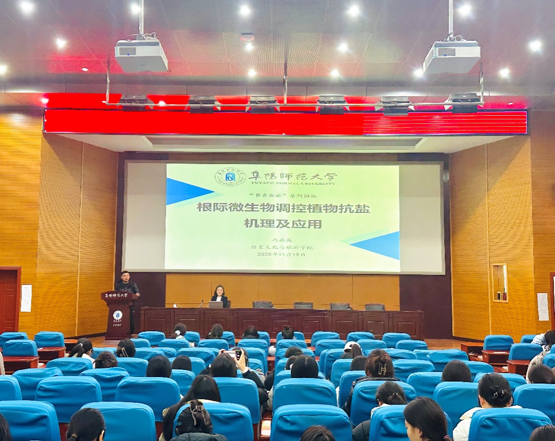 11月19日,马茜茜作题为“根际微生物调控植物抗盐机理及应用”的学术讲座。马博士以通俗易懂的方式解释了固氮菌、促生菌等微生物在帮助植物抵御盐碱胁迫方面的功能机制,并结合其在退化土地治理与微生物生态方面的科研成果,展示了微生物接种在干旱区植被恢复与盐碱地高效利用中的实践价值。在互动交流环节中,师生们就退化土地治理技术、根际微生物菌剂研发、未来研究方向等问题踊跃讨论,现场气氛热烈,学术氛围浓厚。