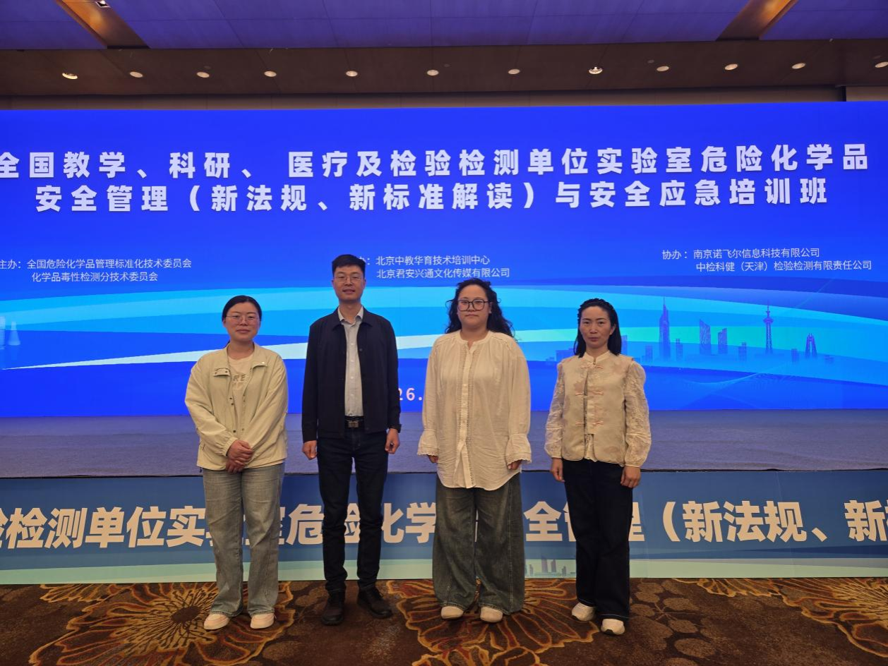 为深入贯彻高校实验室安全管理相关要求,精准掌握新法规、新标准下实验室危险化学品安全管理与应急处置核心技能,4月17日至20日,学院实验室管理人员邹蒙、李亚萍、吴茜、张慧颖等一行四人赴南京参加2026年春季全国教学、科研、医疗及检验检测单位实验室危险化学品安全管理(新法规、新标准解读)与安全应急培训班。