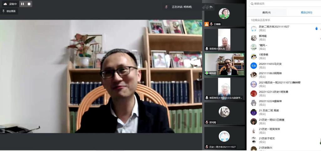 为提升学生研究意识与思维能力,加强学术交流,学院邀请中山大学历史学系党委书记、博士生导师柯伟明教授,11月9日晚7点至9点通过腾讯会议平台作《中国近现代经济史研究概况》的专题报告。会议由学院院长陈雷教授主持,副院长郭从杰及学院师生300余人参与讲座。