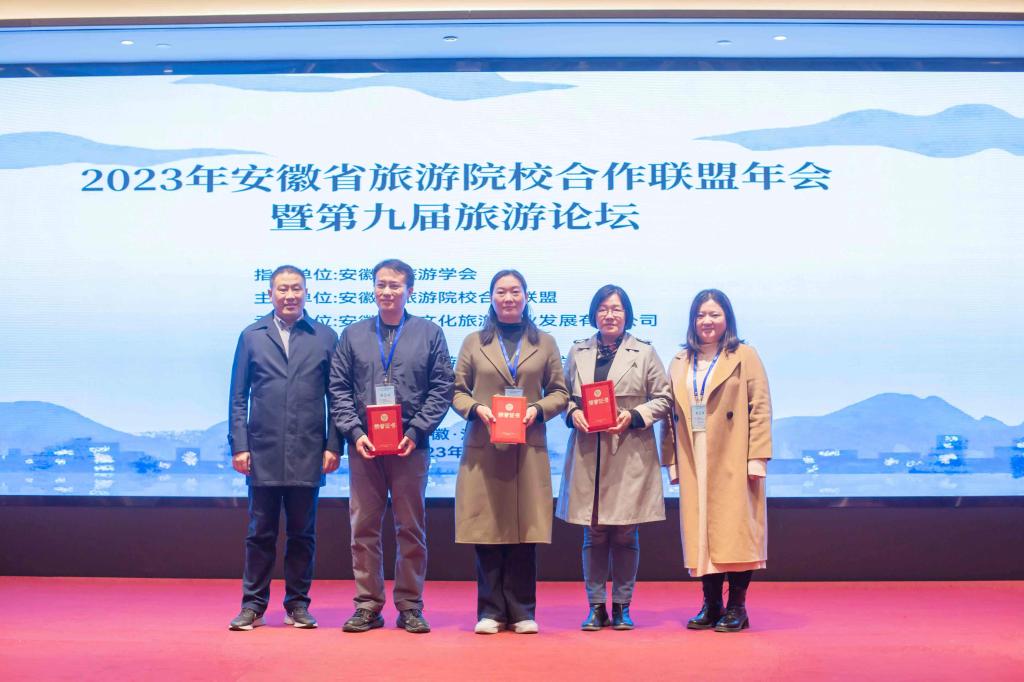 学院院长陈雷教授、旅游系系主任张松婷老师、邹蒙和穆成林老师一行四人参加了此次会议。会议包括主旨报告、论坛、论文评选和专业实践教学基地考察四部分。会中,安徽师范大学地理与旅游学院教授陆林、安徽大学商学院副院长李东和、安徽环球文旅集团总裁徐华玉、安徽职业技术学院教授童登峰等分别作题为《乡村旅游度假化的思考》《治理赋能旅游业高质量发展》《从教育旅行到旅行教育》《职业教育推动文旅融合发展》等主旨报告。陈雷教授担任“旅游教育教学研究”分论坛的点评专家,对旅游管理专业人才和教师培养等方面提出重要建议。张松婷老师参加“旅游业高质量发展研究”分论坛的小组研讨并做专题汇报,获得了“琎华杯”论文评选三等奖。