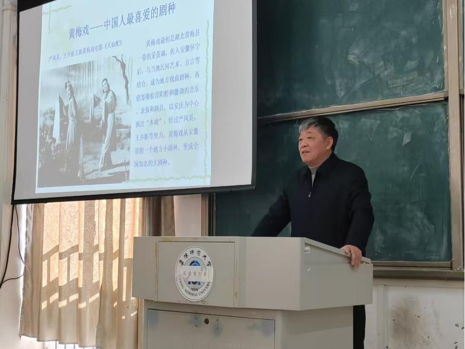 刘伯山长期以来从事徽学研究,著作等身,学术影响力大,同时他对长江文化和淮河文化也有着较为深入的研究。他对安徽长江文化与淮河文化的地理空间进行了详细阐述,指出两者在地理、历史、文化等层面具有可比性与互鉴性。通过对“凌家滩文化”、“青铜与钢铁”、“千字文”、民歌戏曲等12个标志性文化的详细讲解,向同学们展示了长江文化丰富多元的安徽标识,还结合文献阅读、田野调查等治学方法重点讨论了安徽长江文化与淮河文化研究路径的互鉴。