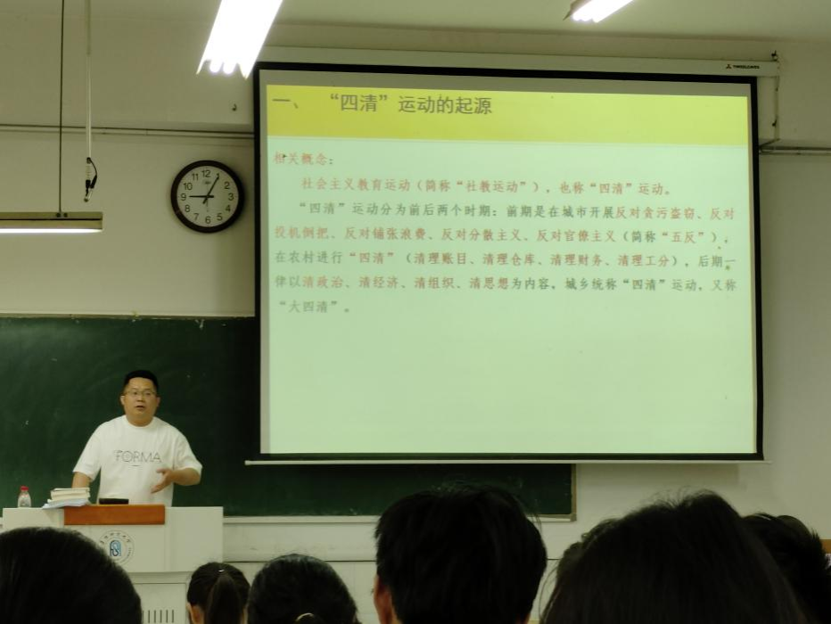 5月7日上午,学院在西湖校区景行楼103教室举办“‘四清’运动的来龙去脉(1963-1966年)”专题学术讲座,本次讲座由学院教师林鹏博士主讲,活动由中国史教研室主任马艾鸿主持,2022级历史学(师范)专业全体本科生参加。