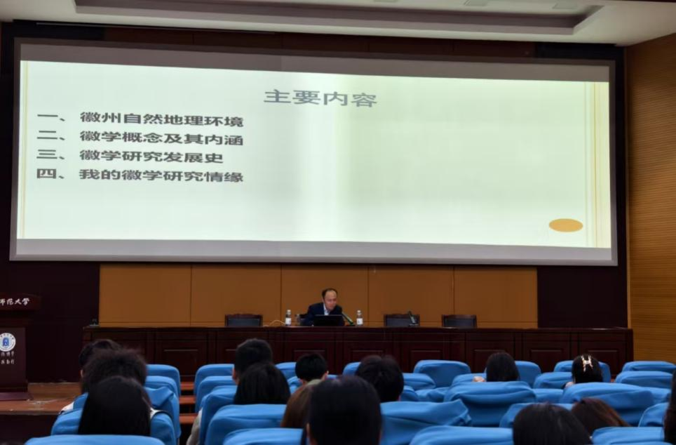 康健以其深厚的学术功底向同学们讲述徽州地理沿革,深入阐释徽学概念和内涵、研究领域及发展历程。他结合自身丰富的学术历程、分享了走上徽学研究道路的机缘,向同学们展现了徽学研究的魅力。讲座中,他使用丰富史料案例,生动呈现出徽学研究的宏观脉络,借个人治学故事,传递历史研究应有的严谨态度与科学方法,为怀揣学术梦想的同学提供了宝贵的经验。最后,他以学习历史要“不忘初心、牢记使命”的叮嘱收尾,赢得全场热烈的掌声。
