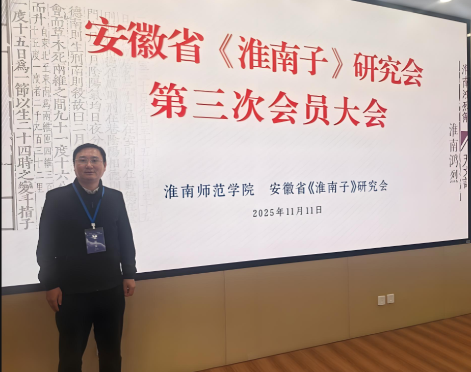 11月10日至11日,安徽省《淮南子》研究会第三次会员大会暨2025年学术年会在淮南师范学院举行。本次大会是在安徽省社科联指导下,由淮南师范学院、安徽省《淮南子》研究会主办。来自省内高校、政府部门、科研机构等相关领域的专家学者及会员代表70余人出席了会议。学院教师李东辉应邀参会。
