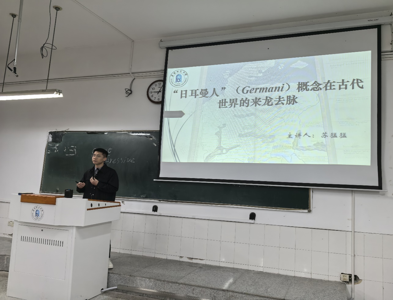 11月17日上午,学院教师苏猛猛于景行楼101教室,做了一场题为“‘日耳曼人’(Germani)概念在古代世界的来龙去脉”的学术报告,讲座由世界史教研室主任李慧老师主持,2024级历史学(师范)专业全体同学参与。
