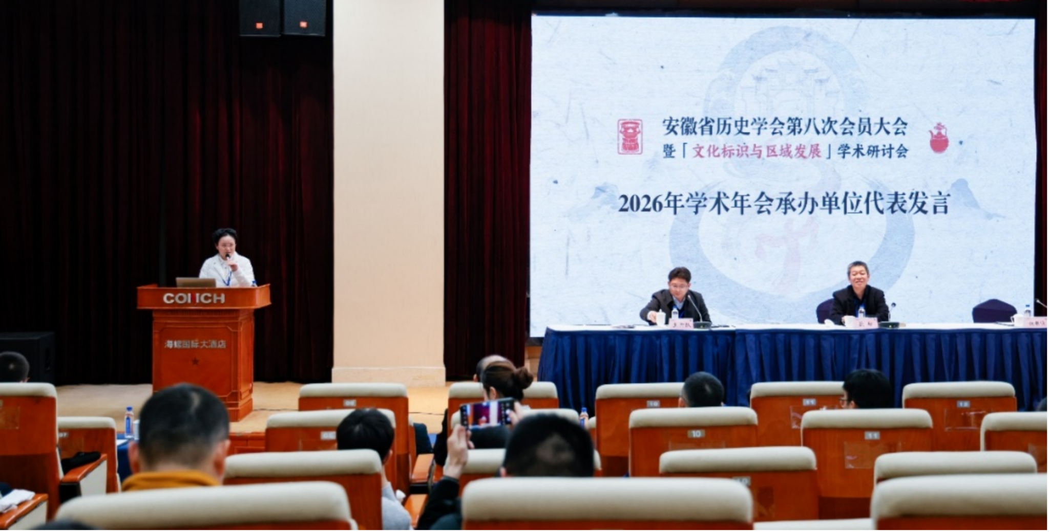 1月9日至11日,由安徽省历史学会主办,安徽师范大学承办的安徽省历史学会第八次会员大会暨“文化标识与区域发展”学术研讨会在芜湖市举办。本次会议严格按照“以文参会”原则,学院师生积极响应,共向大会提交论文60余篇。梁家贵、胡乐伟、洪共福、李慧、姚敏侠、古帅、位书海、何涛、卫驰、钱久隆、李东辉、袁祯清、苏猛猛、韩新芝、占磊、路曙光及研究生胡政、周倩婷、解彤、袁怡文、郭菲儿等,以及来自省内各高校与科研机构的专家学者200余人应邀参会。