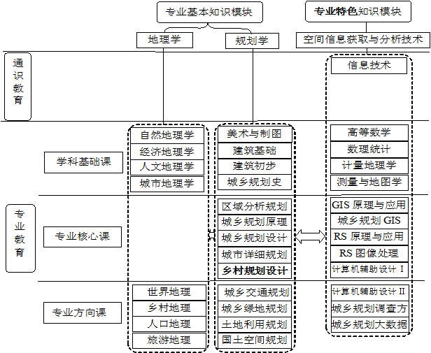 人文地理与城乡规划专业以地理学、规划学和空间数据挖掘三大主线融合为“两大模块”的课程结构。
