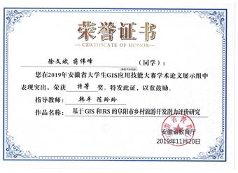 人文地理与城乡规划专业学生,先后荣获全国3D大赛、安徽省大学生GIS应用技能大赛等各类高等级学科竞赛30多项,校级学科竞赛获奖超过200项。