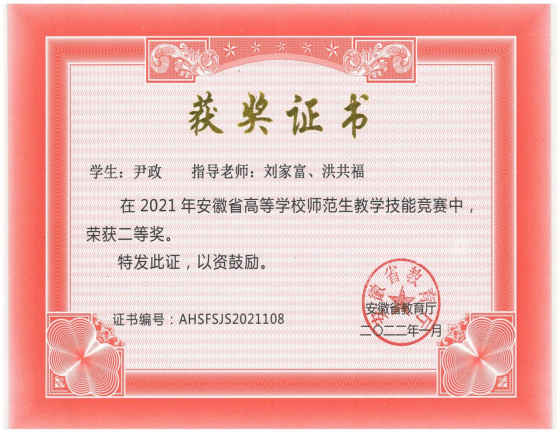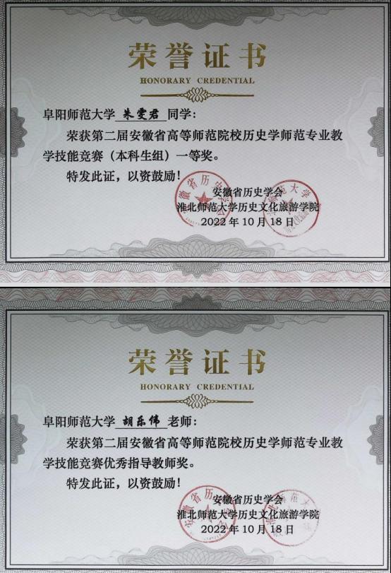 多年来,历史学专业在做好教科研的同时,积极引导学生参加各级各类比赛和科研活动,以师范生技能竞赛、挑战杯、互联网+等赛事为平台,全面提升学生综合素质。近5年,历史学专业学生在学科竞赛等领域获得省级以上奖项30余项。同时,重视学生的德育工作,涌现出“2019年度中国大学生自强之星”“2020年度安徽省百优大学生”“2022年省级双优生”和勇救跌倒老人的“优秀团员”等一大批先进典型。