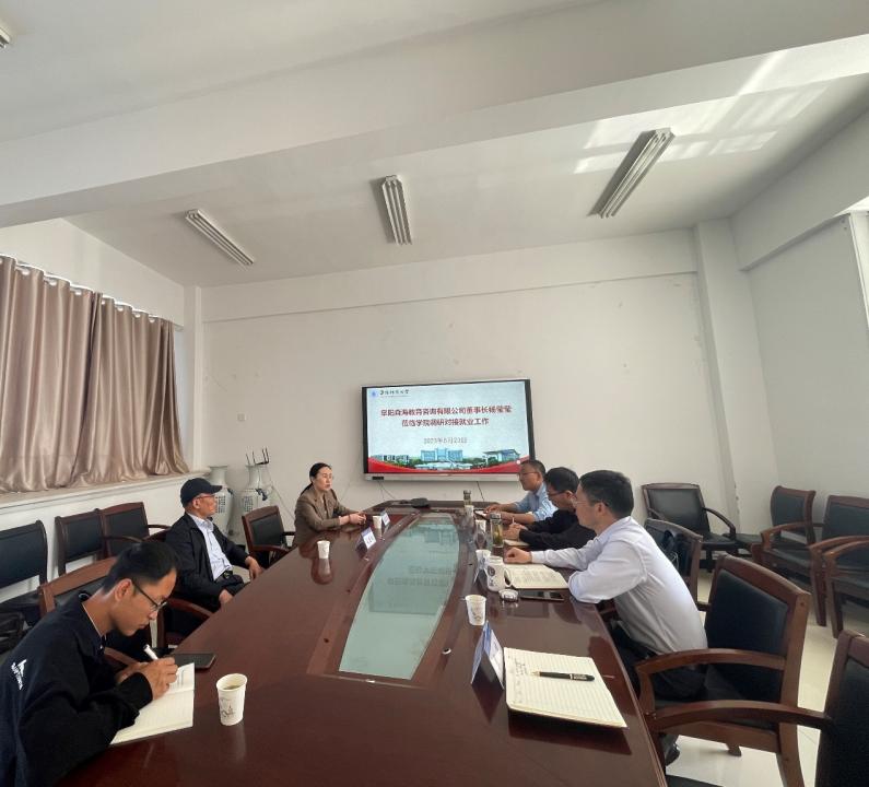 为深入推进2023届毕业生就业“百日冲刺”系列活动走实走深,全面深化校地企合作、产教融合,促进供需精准对接,5月23日上午,学院召开就业工作对接会,阜阳森海教育咨询有限公司总经理杨莹莹,经济学院党委书记房厚信,文学院党委书记陈旭阳参加对接会,会议由学院党委书记吴磊主持。