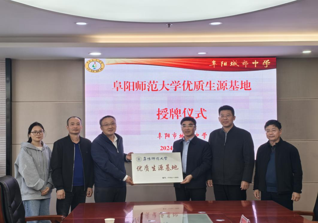 会议签署了阜阳师范大学与城郊中学《优质生源基地建设协议书》,并举行了挂牌仪式。