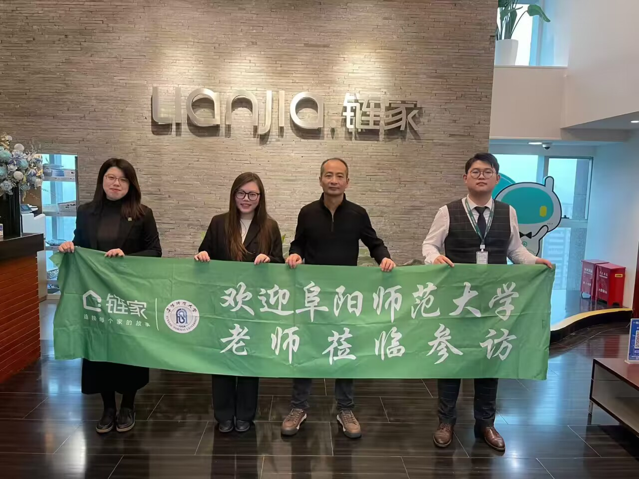 在上海链家房地产经纪有限公司,卞会泉与该公司人力资源中心校园招聘经理刘玲及入职链家的毕业生进行座谈,刘玲就链家的文化价值观、未来发展前景、员工晋升通道和薪酬绩效等作了详细介绍,感谢学校近几年来为公司输送本科毕业生近70人。卞会泉认为双方要进一步加强合作,欢迎刘玲带领团队到学校进行专场招聘,实现共赢新局面。