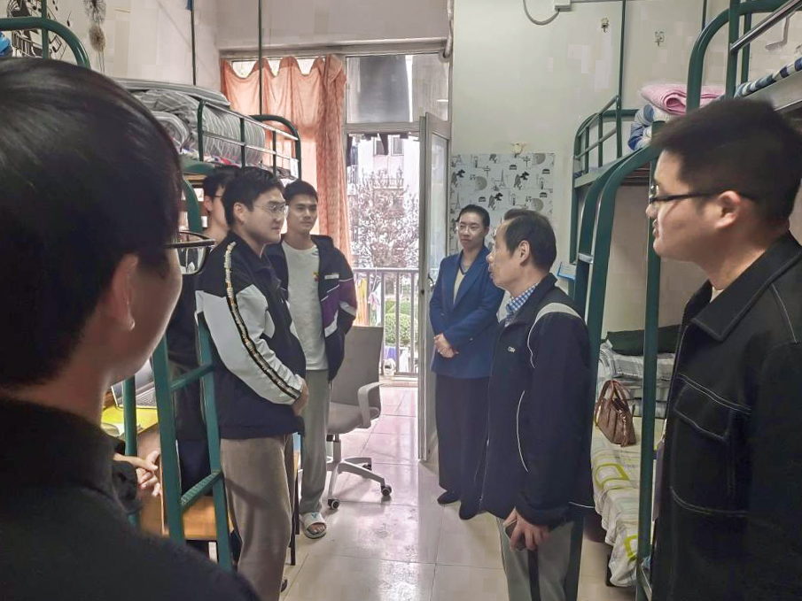活动中,校党委书记带头深入宿舍开展走访调研。在宿舍查看学生宿舍内务、生活环境、设施运行情况,听取学生意见和建议,了解学生思想动态、宿舍管理、后勤保障、校园安全等方面情况。他叮嘱同学们要们要注意改善宿舍卫生状况,提高安全风险防范意识,营造一个安全、健康、舒适的学习和生活环境。