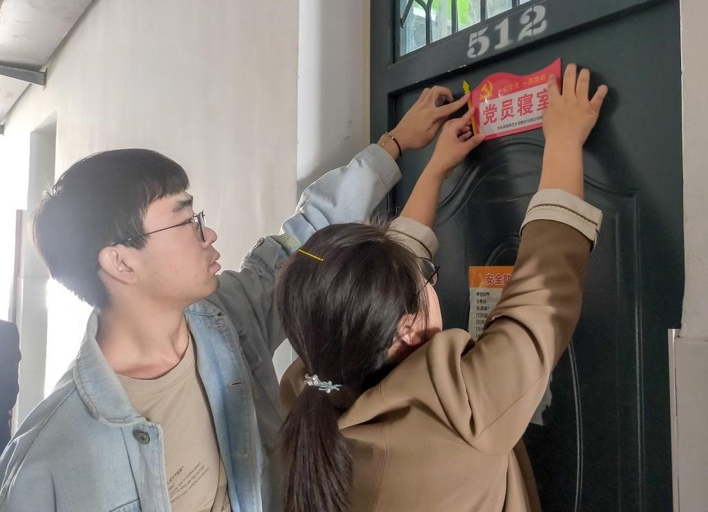 (图:数学与统计学院开展“党员宿舍挂牌”活动)