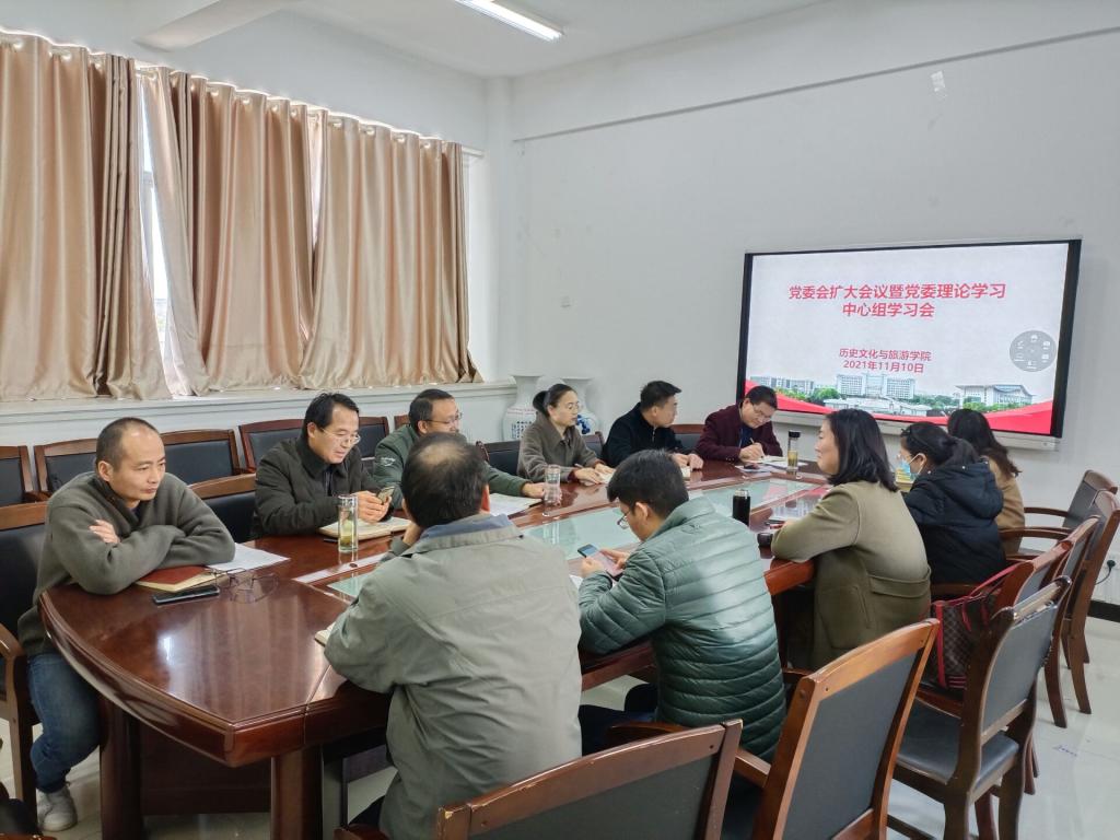 11月10日,学院党委会扩大会议暨党委理论学习中心组学习会召开,深入传达学习贯彻省第十一次党代会、省委十一届一次全会精神。学院党委书记吴磊,党委副书记、院长陈雷,党委副书记卞会泉,副院长郭从杰,党委委员、科级干部、辅导员参加会议,会议由吴磊主持。