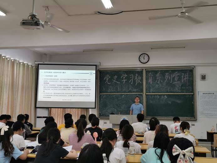 为深入开展党史学习教育,共庆建党100周年,7月2日上午在汉风楼111教室,学院党史学习教育宣讲团成员胡乐伟老师为历史学专业学生作了一场题为“抗日民族统一战线中的华侨群体”的主题宣讲。