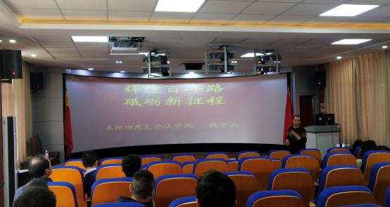 根据学校党委统一安排,4月28日下午,校党史学习教育宣讲团宣讲报告会在文科楼B楼209室举行。校党史学习教育宣讲团成员、法学院党委书记钱守云教授作党史专题宣讲。院党委副书记、院长陈雷主持报告会,学院全体教职工现场聆听报告会。