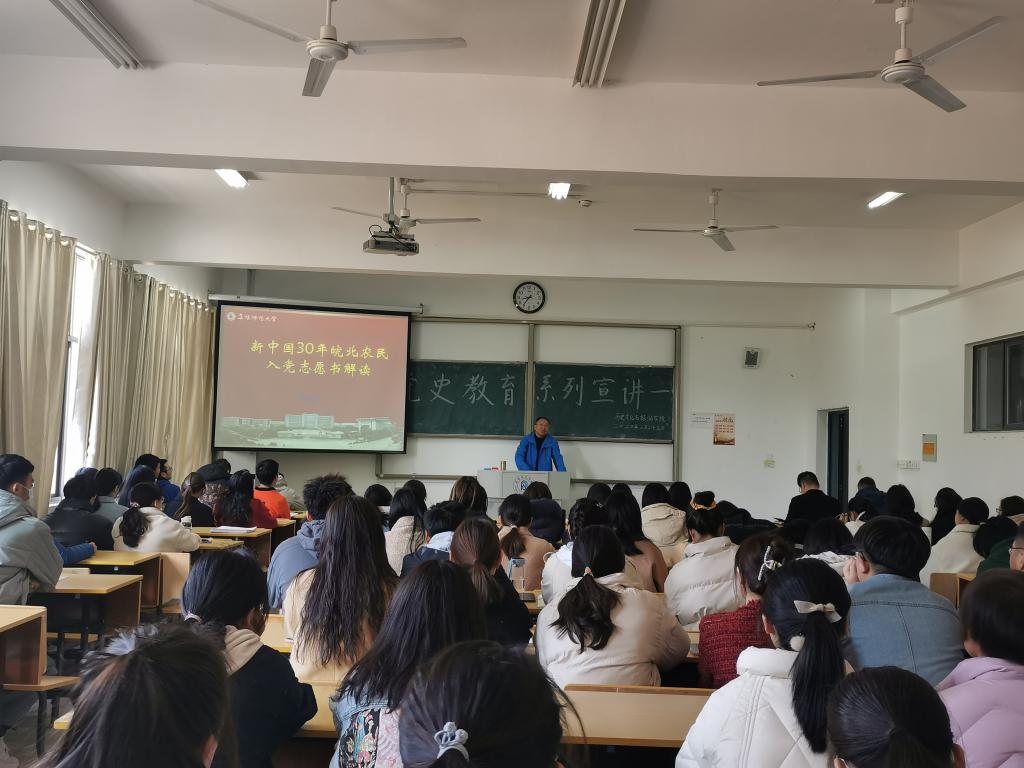 3月22日上午,学院党史学习教育宣讲团首场宣讲报告会在西湖校区汉风A楼107教室举行。宣讲团成员吴修申教授作党史专题宣讲,学院学生支部书记、团委负责人、部分教师党员以及全体学生党员、发展对象100余人参加。
