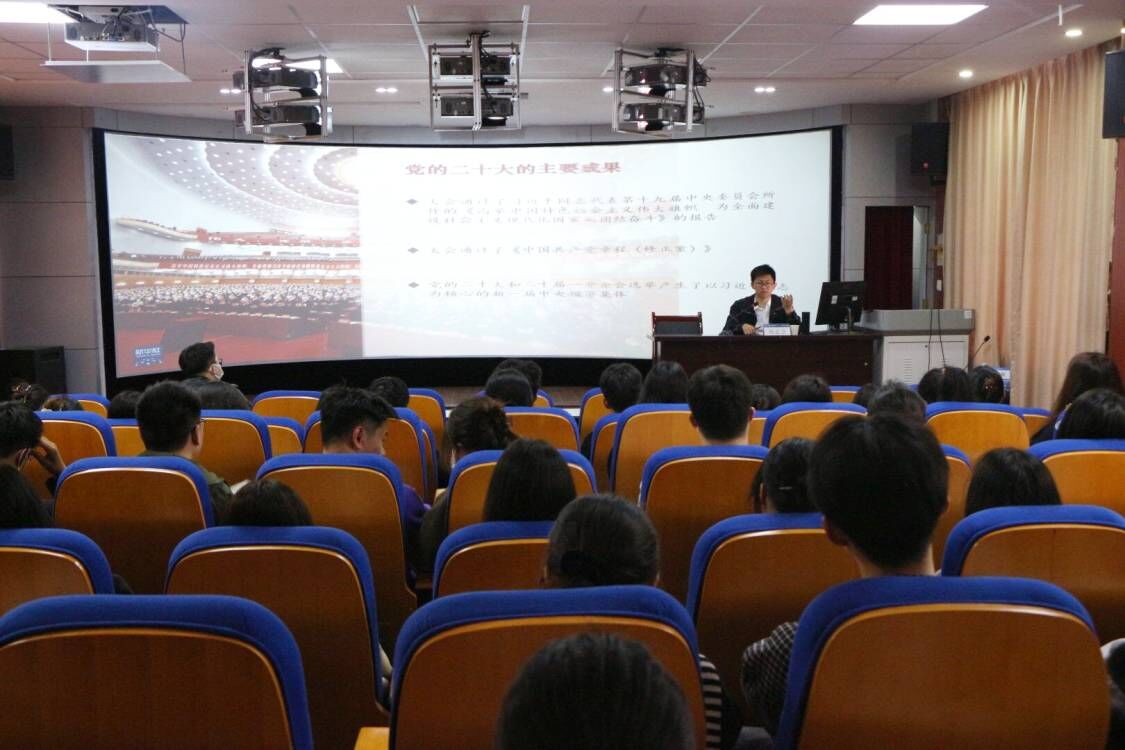 尚志会从“深刻领会党的二十大的重大意义”“准确把握党的二十大精神实质”“迅速兴起学习宣传贯彻党的二十大精神的热潮”等三个方面对党的二十大精神进行了全面系统的阐释。他强调,学习宣传贯彻党的二十大精神是一个常学常新、不断深化的过程,同学们要做到学用结合、知行合一,不断深学细悟蕴含其中的世界观和方法论,坚定不移地做习近平新时代中国特色社会主义思想的坚定信仰者和忠实实践者。他指出,未来属于青年,希望寄予青年,新时代青年要牢记习近平总书记的嘱托,坚定理想信念,筑牢精神之基,厚植爱国情怀,深入学习贯彻党的二十大精神,用青春之火点亮希望之光。
