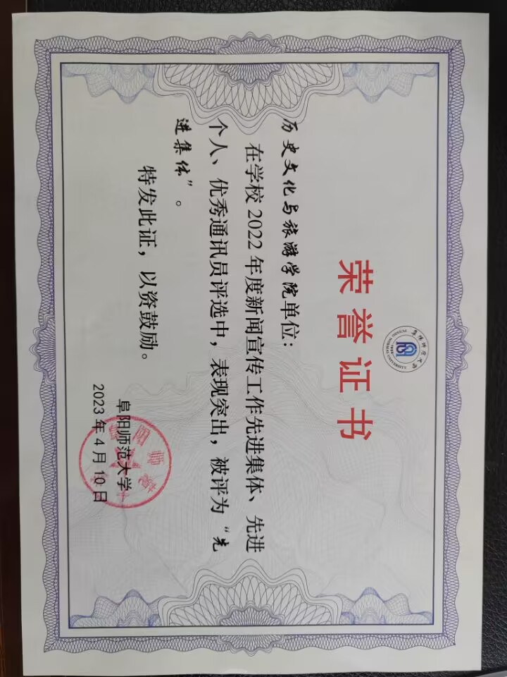 根据学校《关于公布2022年度新闻宣传工作先进集体、先进个人、优秀通讯员评选结果的通知》精神,我院荣获2022年度新闻宣传工作先进集体,孟当当荣获新闻宣传工作优秀通讯员。