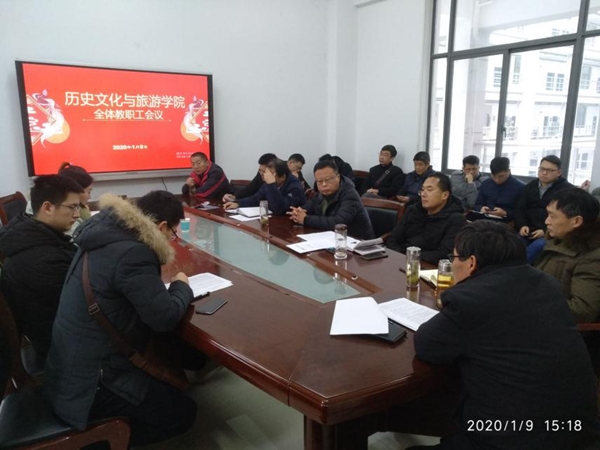 2020年1月9日下午,历史文化与旅游学院2019年教职工大会暨工会会员大会在汉风楼B楼333会议室召开。历史文化与旅游学院院长李良玉、党委书记吴云、副院长陈雷及全体教职工参会,会议由吴云主持。