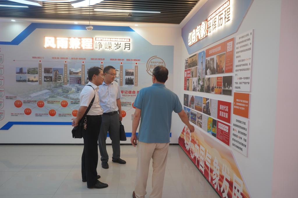在党建工作交流环节,学院领导和老师在王海东书记的引导下参观了气象局党建展厅。参观过程中,王书记结合我国气象观测、预报技术的发展,从改善党建阵地建设、营造浓厚的党建学习氛围、促进党员思想认识提升等几个方面,详细介绍了气象局近年党建工作的优秀成果。吴磊书记和陈雷院长对于气象局在社会生产生活服务上所做的工作表达了高度的赞扬,并表示应学习气象局党建工作优秀做法,建设高质量党建阵地,引导党建工作与各专业特色相结合,推动党员理论水平与工作能力同步提升。