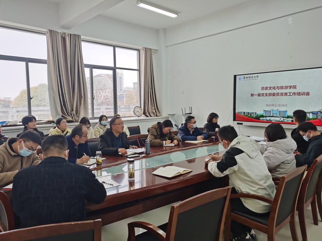 为扎实推进基层党建“强基础、提质量、创品牌”工作,11月29日下午,学院在汉风B楼333会议室召开新一届党支部委员党务工作培训会。学院党委书记吴磊主持会议,党委副书记、纪委书记卞会泉,组织员李才森和新一届党支部委员参加会议。
