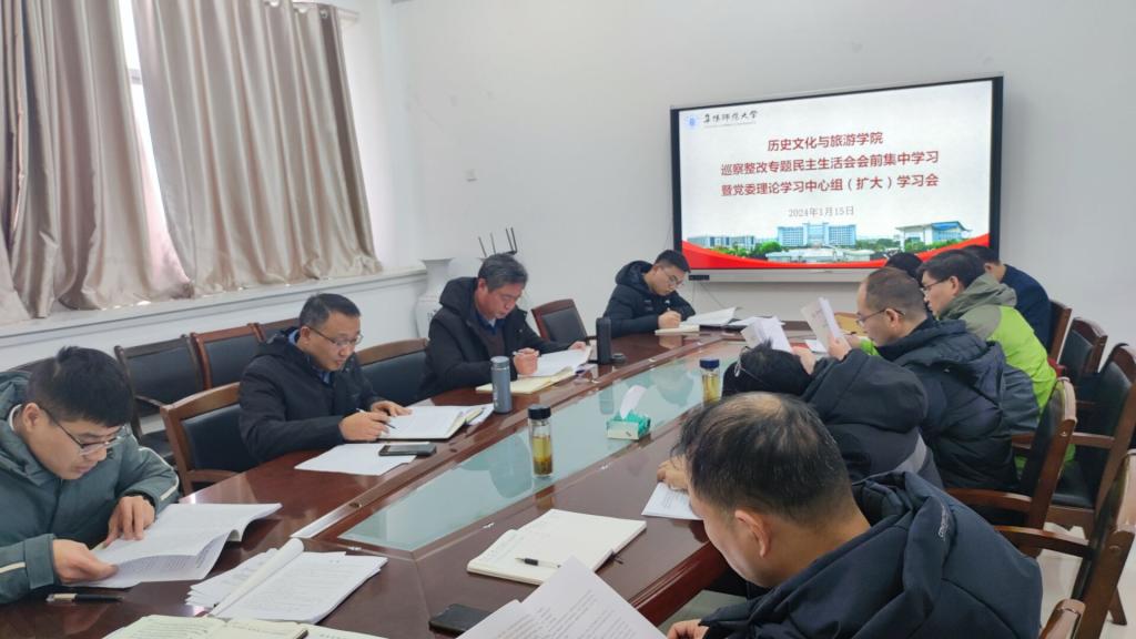 1月15日下午,学院在汉风B楼333会议室召开巡察整改专题民主生活会会前集中学习暨党委理论学习中心组(扩大)学习会。学院党委书记吴磊,党委副书记、院长梁家贵,党委副书记卞会泉,副院长郭从杰,党委委员、党支部书记、科级干部参会,会议由吴磊主持。
