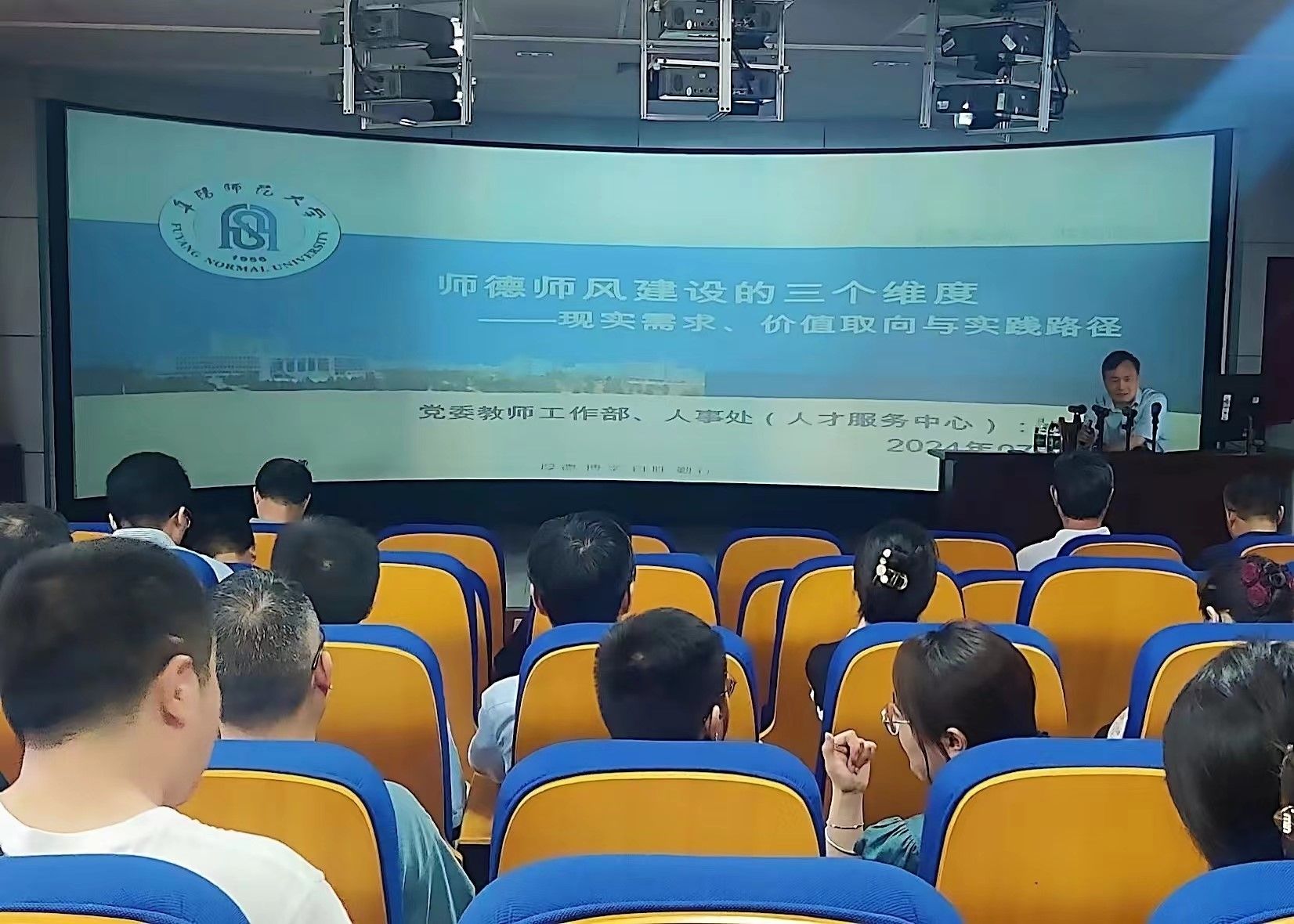 为深入学习贯彻习近平总书记关于教育的重要论述,扎实推进师德师风建设,7月8日下午,学院在西湖校区汉风B楼209室举办师德师风建设辅导报告会。报告会由学院党委书记吴磊主持,学院全体教职工聆听报告会。