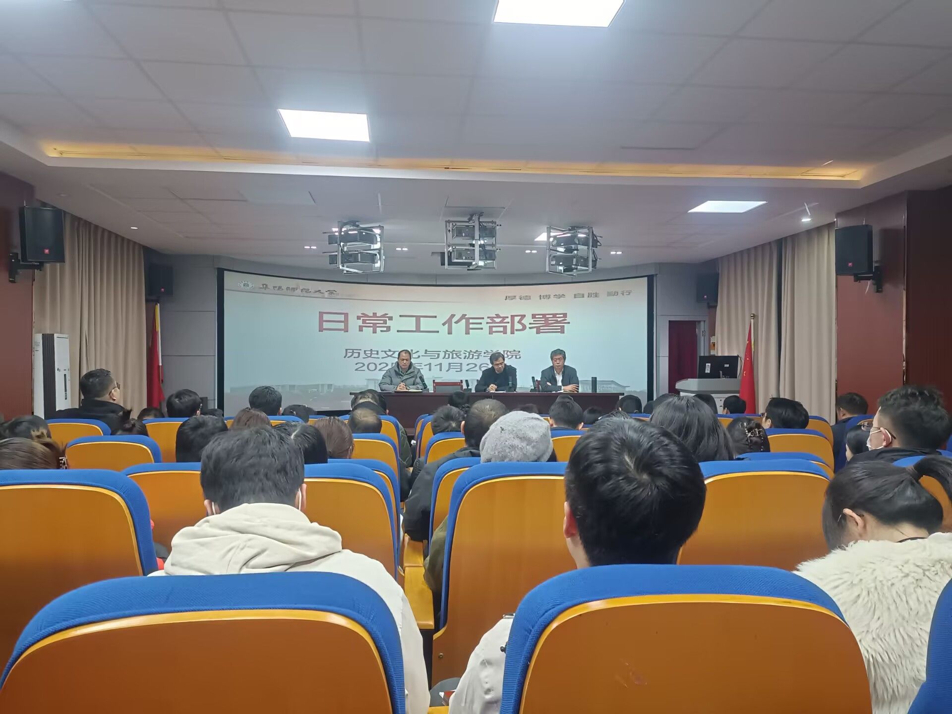 院长梁家贵通报了近期工作,对广大教职工在全省历史学师范专业教学技能大赛、城乡规划学术研讨会组织等方面的辛勤付出表示感谢。他就师德师风建设提出明确要求,强调全体教师要坚守育人初心,自觉维护教师队伍良好形象,以德立身、以德立学、以德施教。同时,他就强化规矩意识、严格履行出差和外出报告审批程序等方面作了强调。
