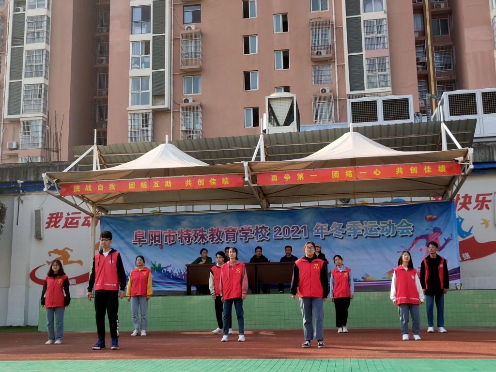 本次活动正值阜阳市特殊教育学校举办2021年冬季运动会,学院志愿者在该校运动会开幕式上表演了精心准备的《我和我的祖国》(手语舞)《快乐崇拜》《我的未来式》等节目。随后,志愿者又带领孩子们在操场上玩起了“丢手绢”“老鹰捉小鸡”等游戏,欢乐的气氛充满了整个校园。在短暂的相处时间里,特殊教育学校的孩子们虽然不能用话语准确表达自己内心的欢欣与雀跃,但微笑和拥抱成了他们表达爱的方式。志愿者们切身地体会到了这些“折翼天使”们的天真可爱,纷纷表示:“希望能给孩子们多奉献一份爱心,带动更多的人关心残疾儿童,汇聚爱心力量,帮助他们健康成长。”
