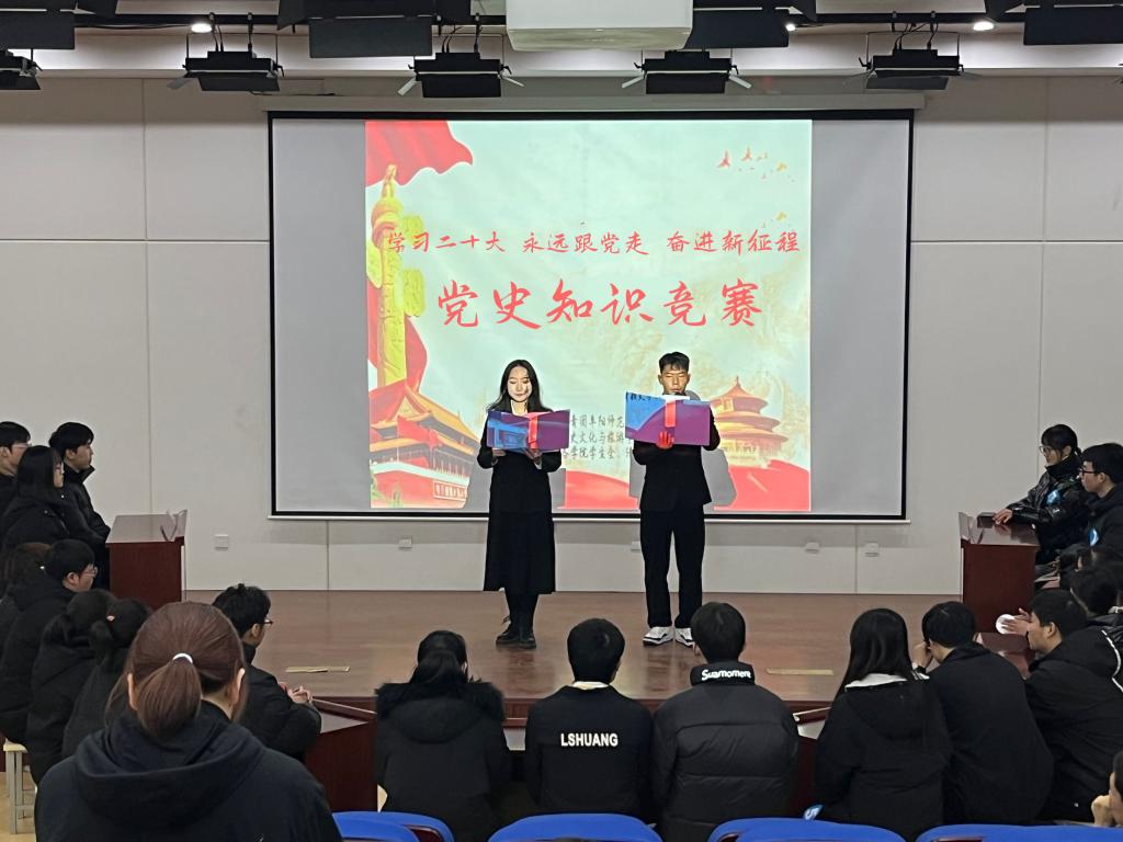 为认真学习宣传贯彻党的二十大精神,切实增强广大学生的政治责任感和历史使命感,2月23日,由校团委主办、历史文化与旅游学院承办的以“学习二十大,永远跟党走,奋进新征程”为主题的党史知识竞赛在汉风楼小礼堂举行。