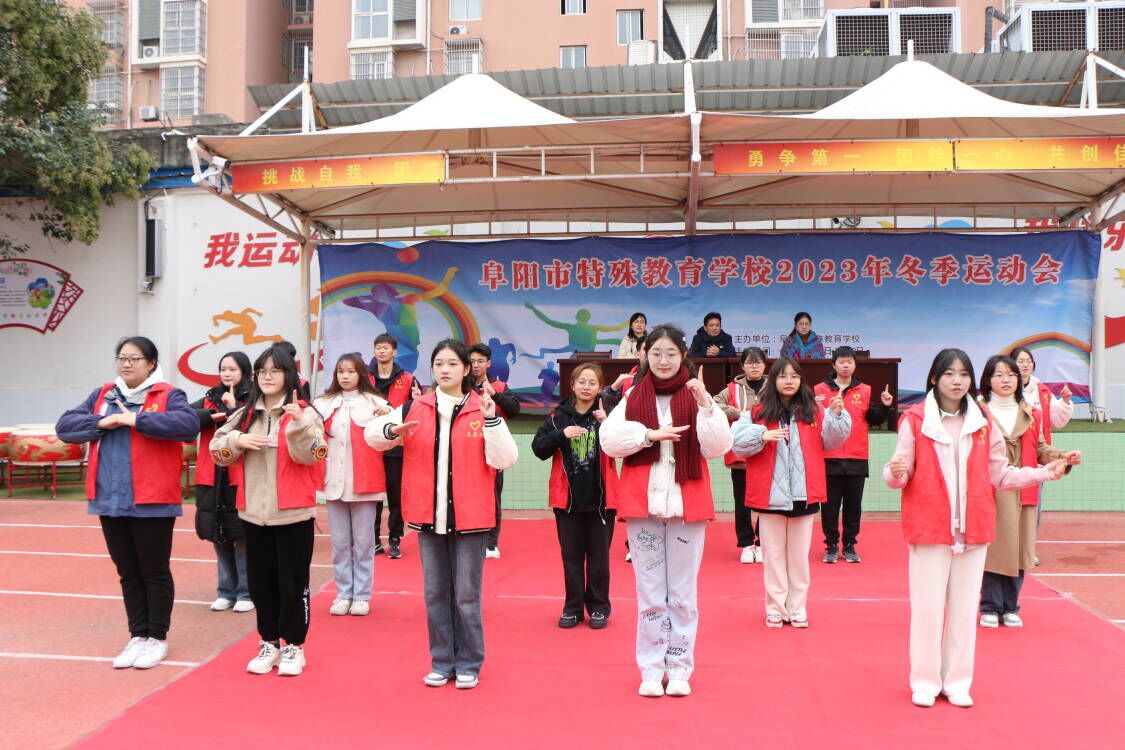 正值阜阳市特殊教育学校举办2023年冬季运动会,志愿者们在运动会开幕式上为孩子们表演了精心准备的手势舞《我们在一起》,表达了心中满满的关爱。随后,志愿者与孩子们一同做游戏、唱歌曲、讲故事……欢声笑语充满着整个校园。活动结束后,志愿者们纷纷表示:“节目准备虽然繁琐而辛苦,但当看到每个孩子稚嫩的脸上流露出喜悦的笑容,此刻我感受到无比的幸福,希望每一位‘折翼天使’都能够在爱的阳光下健康快乐成长。”