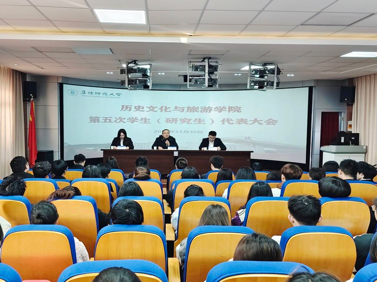 11月30日上午,学院第五次学生(研究生)代表大会在西湖校区汉风B楼209室召开。学院党委书记吴磊参加开幕式并讲话,50名学生代表参加会议。会议由学院团委负责人孟当当主持。
