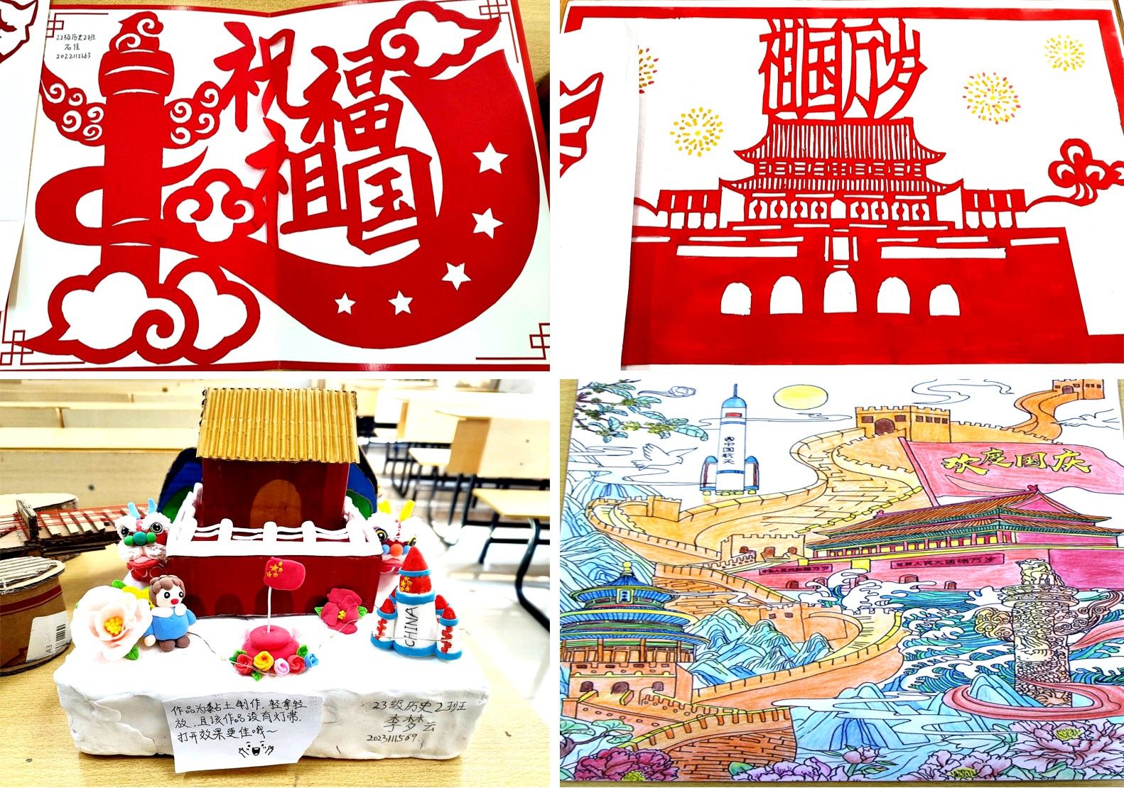 国庆创意抒豪情,赤子深情绘华章。为庆祝中华人民共和国成立75周年,激发学生爱国热情,培养创新精神和艺术素养,2024年10月1日,学院在汉风A楼111教室举办“盛世华彩 创意献礼”手工创作活动。活动中,同学们热情高涨,纷纷发挥创意,运用各种材料精心制作出自己心仪的手工艺品。一幅幅精美的剪纸、黏土、绘画等作品展示了同学们的多才多艺和对祖国的美好祝福,更凝聚了他们对祖国的深厚情谊。