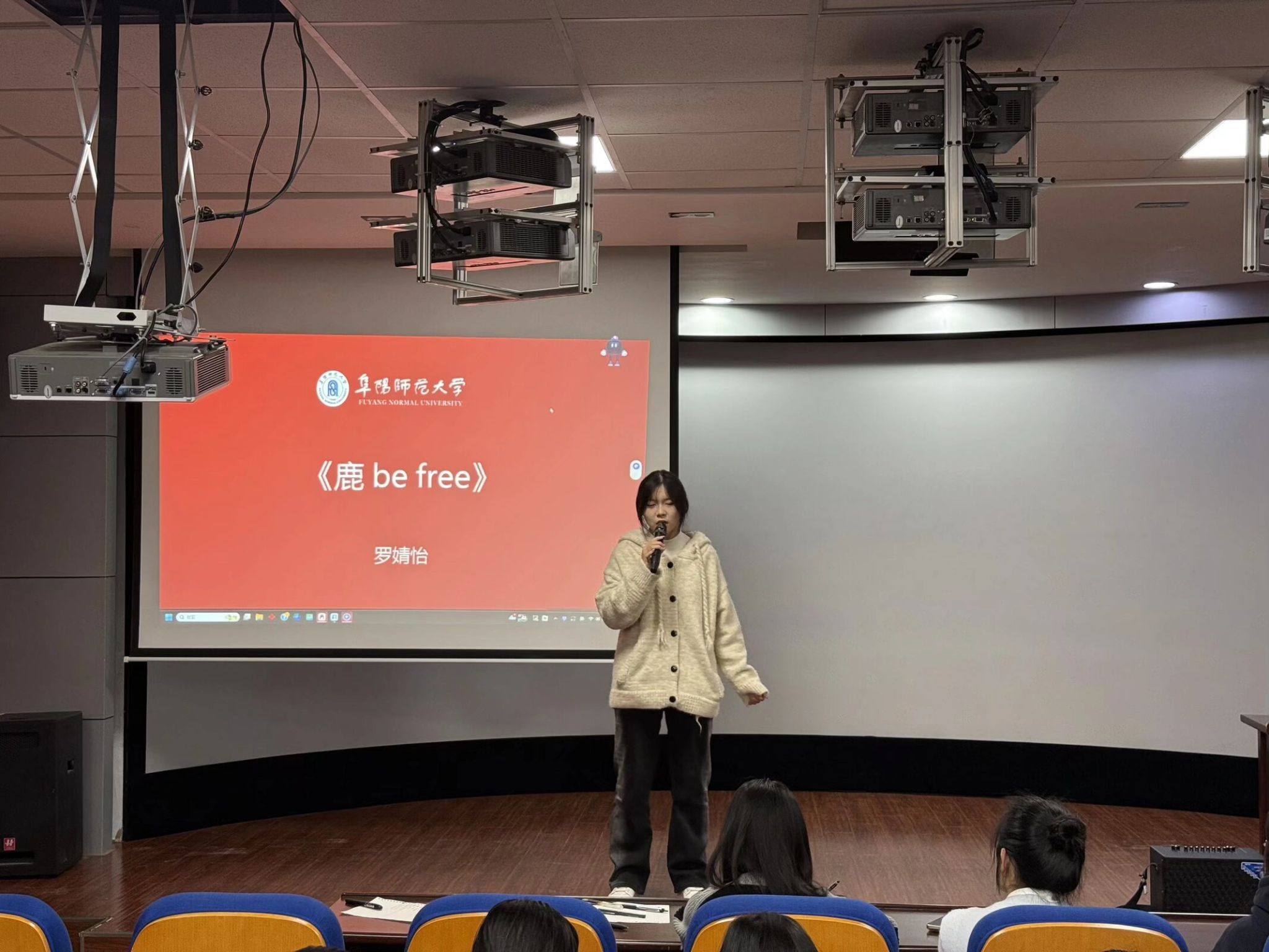 比赛现场,各参赛选手依次上台展现个人演唱风采。2025级历史学(师范)2班的李苗同学以《剩下的盛夏》率先点燃全场,清澈的嗓音引发集体合唱;2025级地理信息科学1班方政宇演唱的《Love Song》让现场沉浸在浪漫氛围中;2025历史学(师范)1班袁红豆和徐静雪两名同学共同演绎的《快乐的扑满》,默契配合与轻快曲风带动观众跟着摇摆;2025地理科学(师范)1班罗婧怡同学带来的歌曲《鹿be free》,高亢的唱腔展现出对自由与梦想的追逐。经过激烈角逐,最终2025级地理科学(师范)1班罗婧怡斩获一等奖,2025级地理科学(师范)1班朱庆华等荣获二等奖,2025级历史学(师范)2班郑楠等获得三等奖。