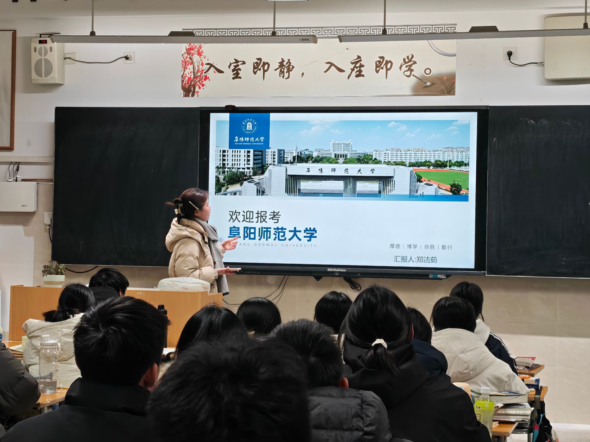 归来情系母校,接力薪火相传。多名学子积极参与寒假“母校行”活动,化身校园宣传员,搭建师大与高中母校的沟通桥梁。2025级地理信息科学1班戴诗函、郑洁茹分别走进合肥寿春中学与合肥一中肥东分校,面向高三学子开展招生宣讲,展现我校育人风采。2025级博物馆研究生余立敏应邀参加六安市霍邱一中举办的“情系一中·接力梦想”校友返校宣讲活动,通过分享成长经验,为学弟学妹答疑解惑,助力他们在人生关键阶段明晰方向。