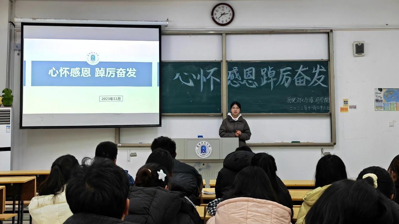 为深入宣传高校国家资助政策,切实做好学生资助工作,提升资助育人实效,学院于11月29日下午分别在汉风楼A楼107、109、111教室开展了“心怀感恩,踔厉奋发”资助政策主题宣讲活动,学院8名资助宣传大使及百余名大一新生参加。