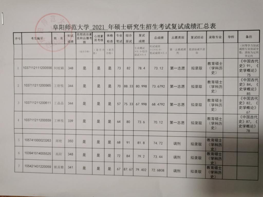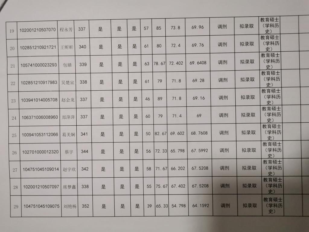 我院2021年学科历史教育硕士录取名单