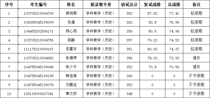 公示时间为4月10日至4月17日。若有异议,请在公示期间实名向历史文化与旅游学院硕士研究生招生复试工作考核领导组反映。确定为拟录取的考生,若有放弃拟录取资格者,将按照参加复试考生总成绩排序依次递补,正式录取名单以上级招生考试部门审定的为准。