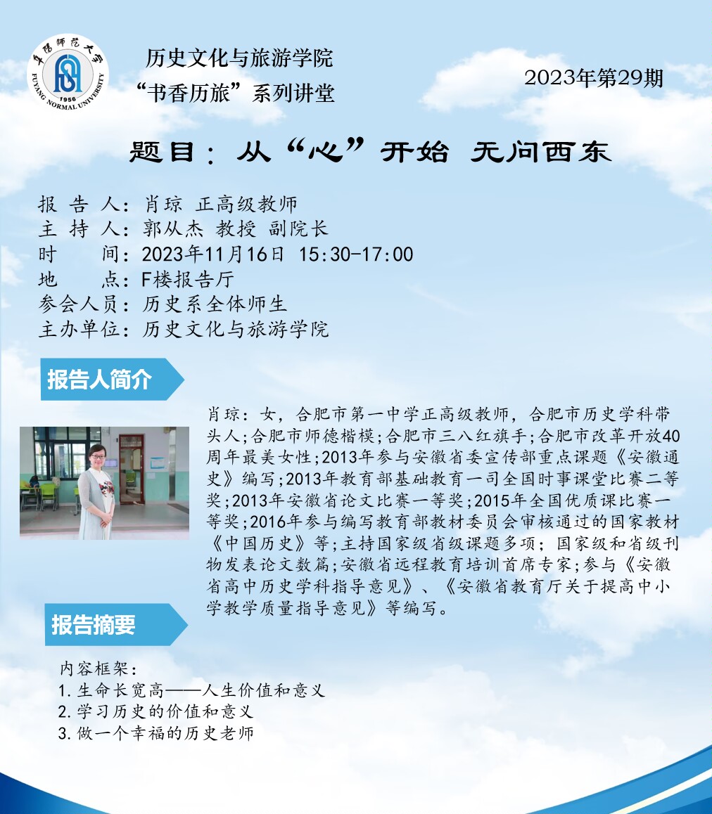 “书香历旅”系列讲堂2023年第29期:从“心”开始 无问西东