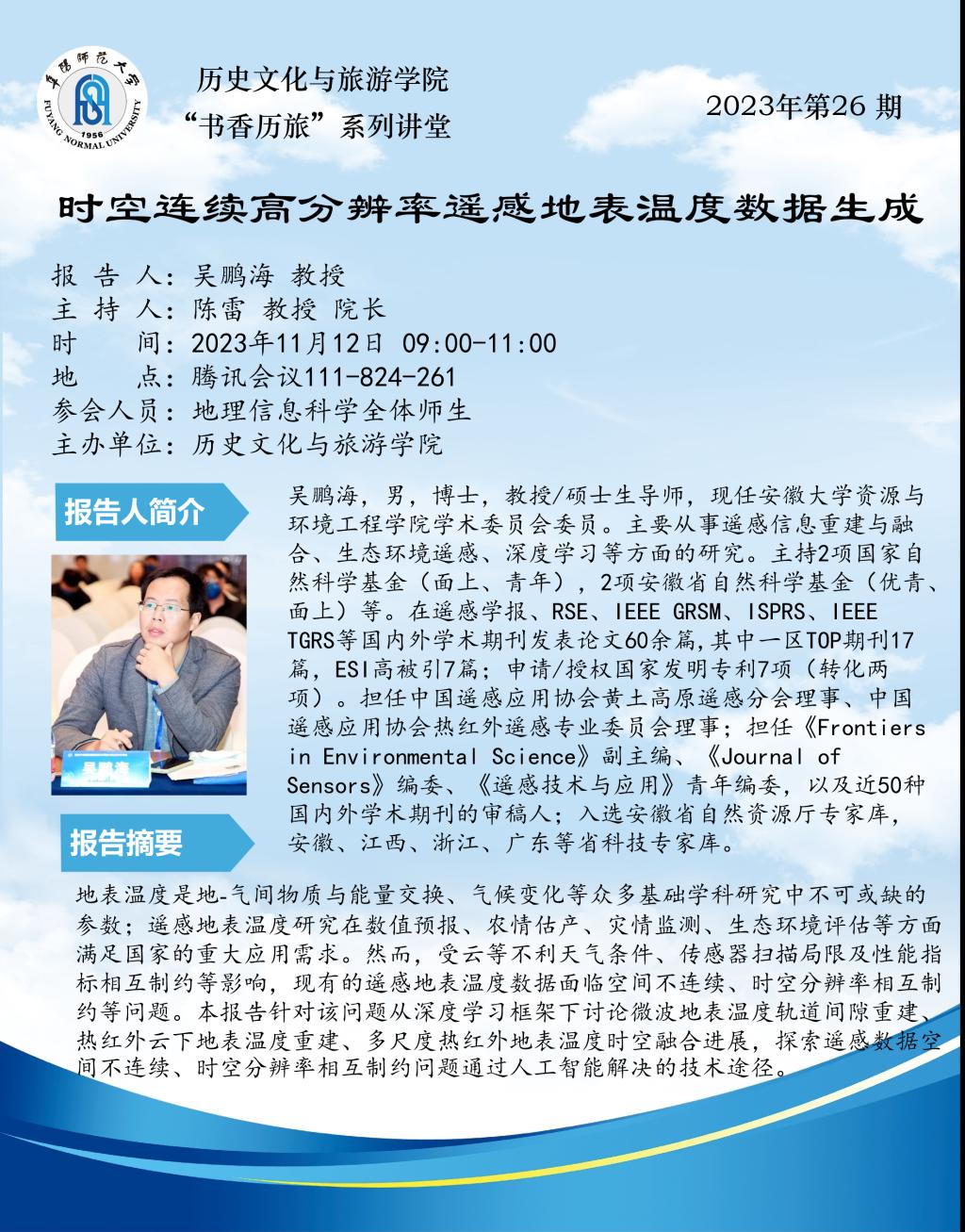 “书香历旅”系列讲堂2023年第26期:时空连续高分辨率遥感地表温度数据生成