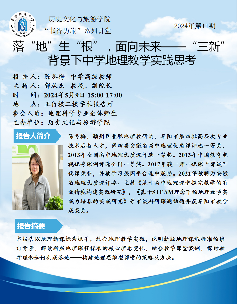 “书香历旅”系列讲堂2024年第11期:落“地”生“根”,面向未来——“三新” 背景下中学地理教学实践思考
