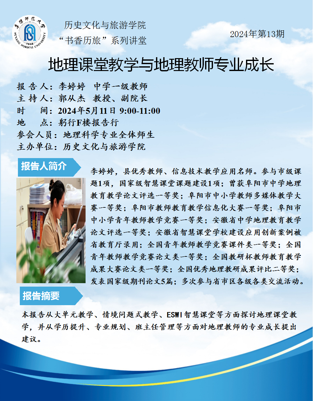 “书香历旅”系列讲堂2024年第13期:地理课堂教学与地理教师专业成长