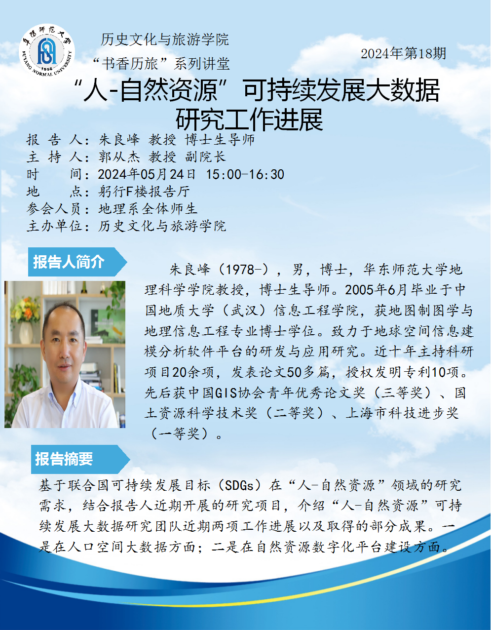 “书香历旅”系列讲堂2024年第18期:“人-自然资源”可持续发展大数据研究工作进展