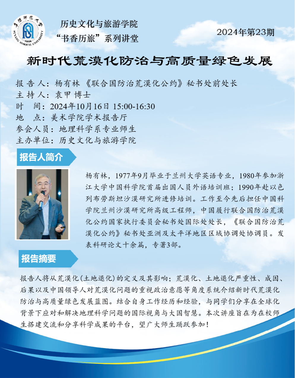 “书香历旅”系列讲堂2024年第23期:新时代荒漠化防治与高质量绿色发展