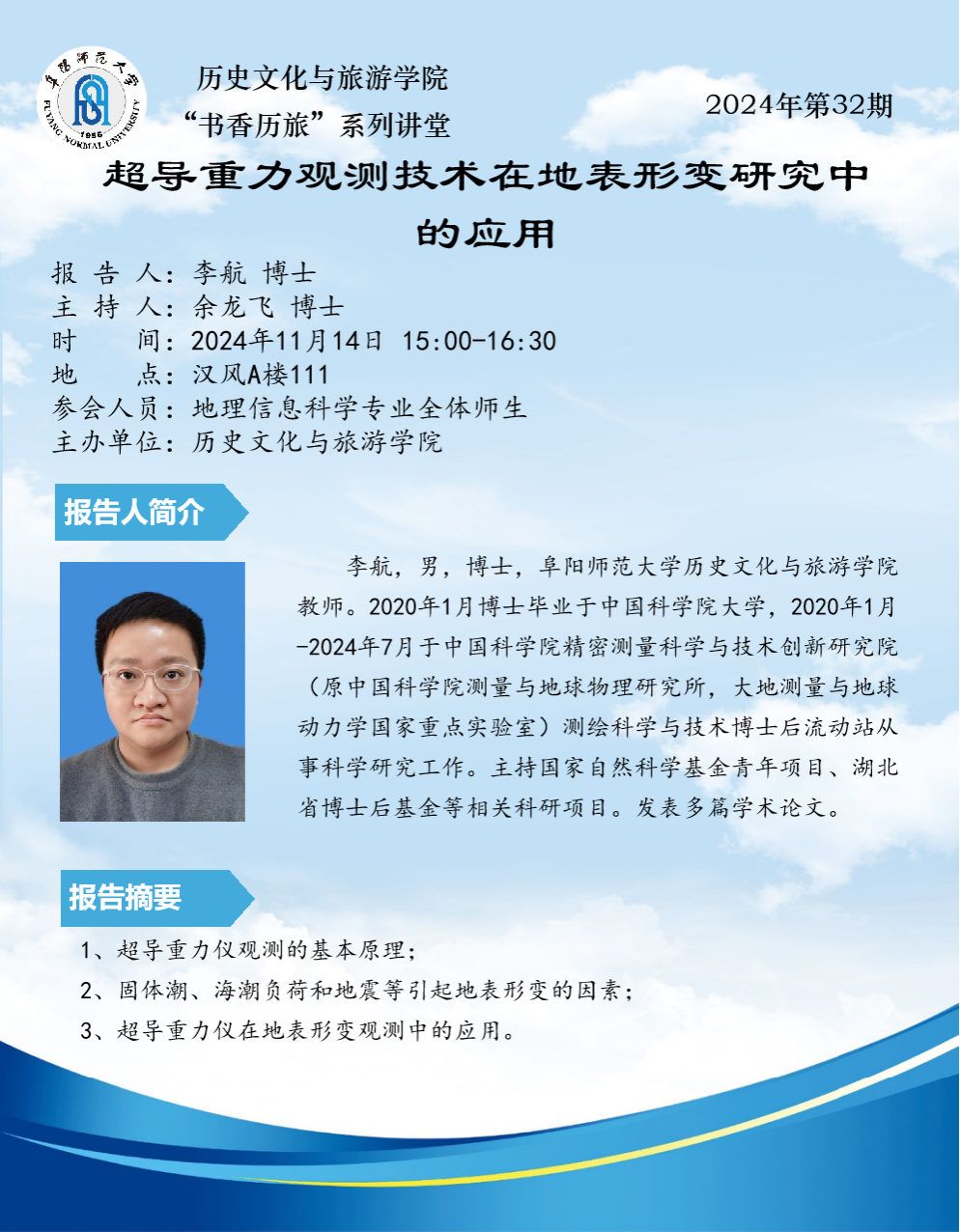 “书香历旅”系列讲堂2024年第32期:超导重力观测技术在地表形变研究中的应用
